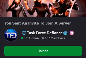 A veteran fleet in the STAR TREK ONLINE™️ Universe. The founders of Task Force Defiance have been around since the dawn of STAR TREK ONLINE in 2010, and created the fleet itself in an act of defiance- banding together to have a fleet where all officers have a voice. Task Force Defiance was established April 17, 2013 and has been going strong ever since.
